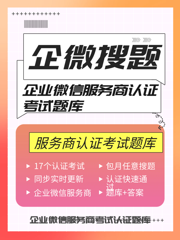 企业微信服务商认证考试目前从2021年到现在已经更新了17个题库了